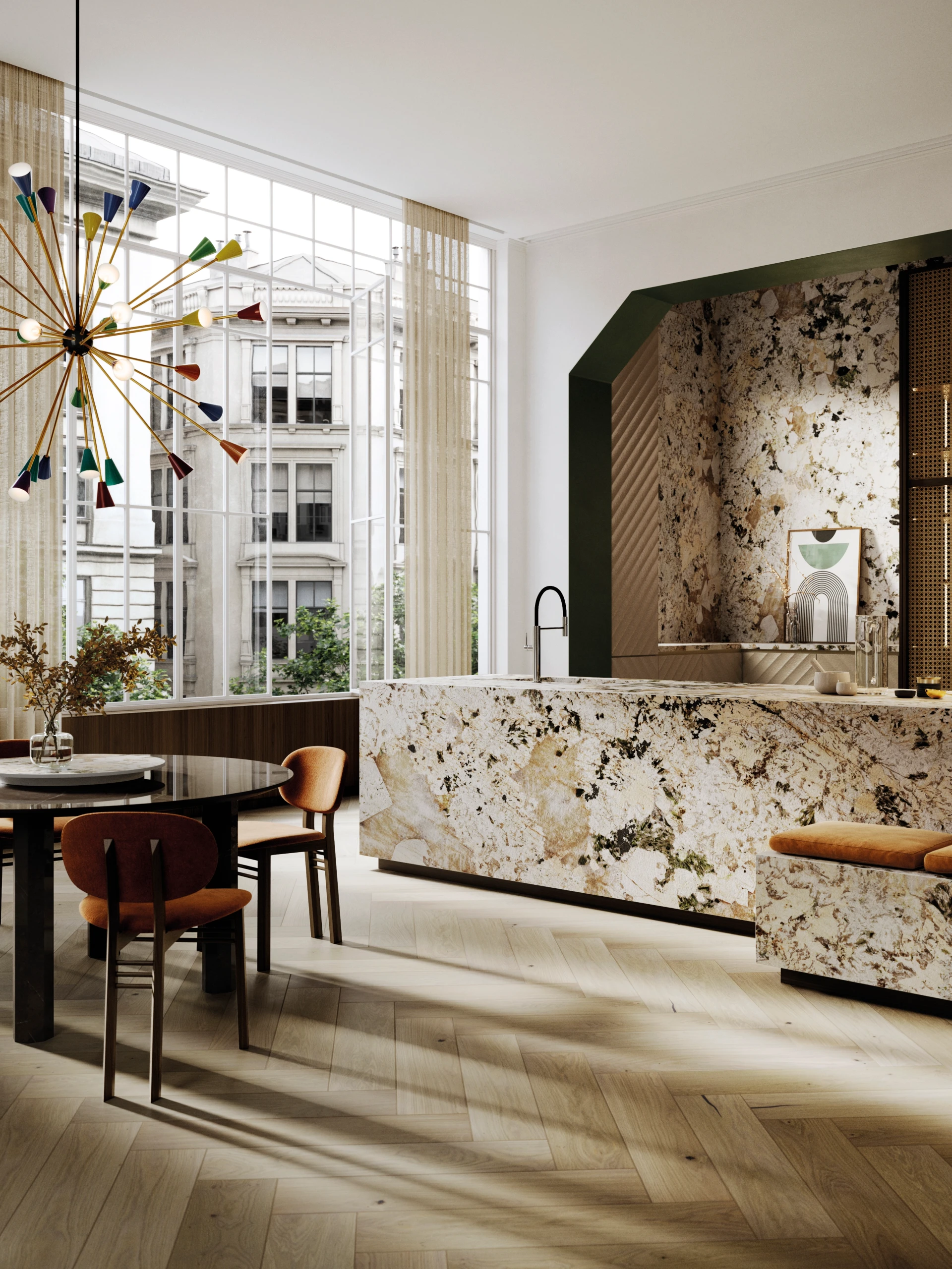 Wyjątkowy design, małe kryształki ktore na tle kremowych tonów, bardzo szczegółowo odtwarzają naturę brazylijskiego kamienia.